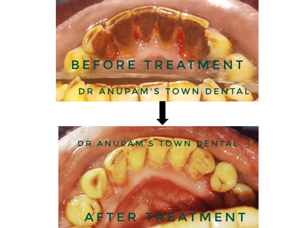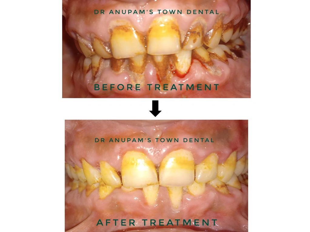 # A generalized overall teeth cleaning is done and healthy gums after one week.